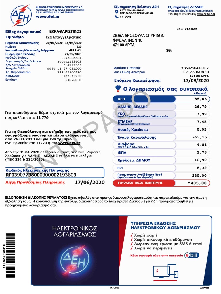 Οι πολίτες οι οποίοι υπέβαλαν αίτηση από την 01092020 και πριν την ολοκλήρωση της εκκαθάρισης ΕΝΦΙΑ 2020 και οι οποίοι έχουν μεταβολές στην ακίνητη περιουσία τους μέσα στο 2019 εκκαθάριση ΕΝΦΙΑ 2020 μπορούν αν θέλουν να. Κοινωνικό Τιμολόγιο ΔΕΗ 2020. H τιμή της kwh εξαρτάται από τις συνολικές καταναλισκόμενες σε 4 μήνες 120 ημέρες.